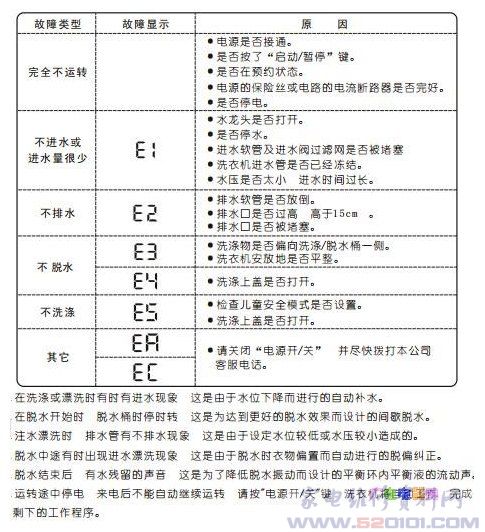 三洋全自动洗衣机故障代码(型号通用)