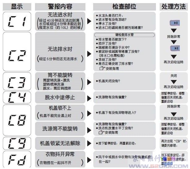洗衣机故障代码