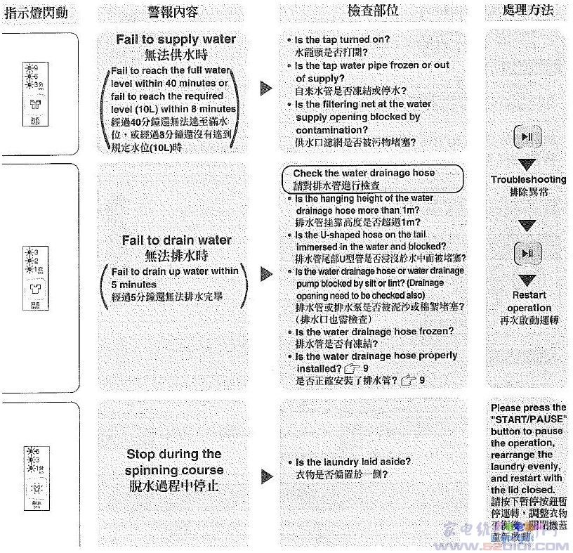 格兰仕滚筒洗衣机面板指示灯闪烁含义代码