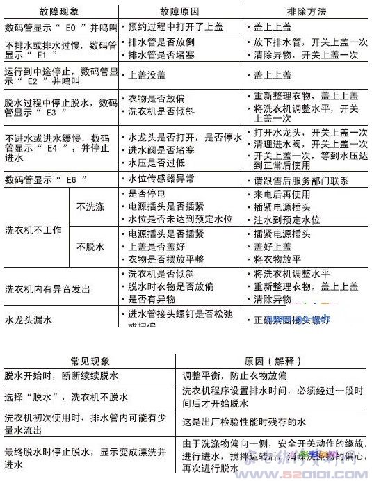 海尔双动力全自动XQS45-728洗衣机故障代码表