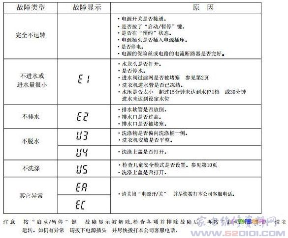 格兰仕滚筒洗衣机面板指示灯闪烁含义代码
