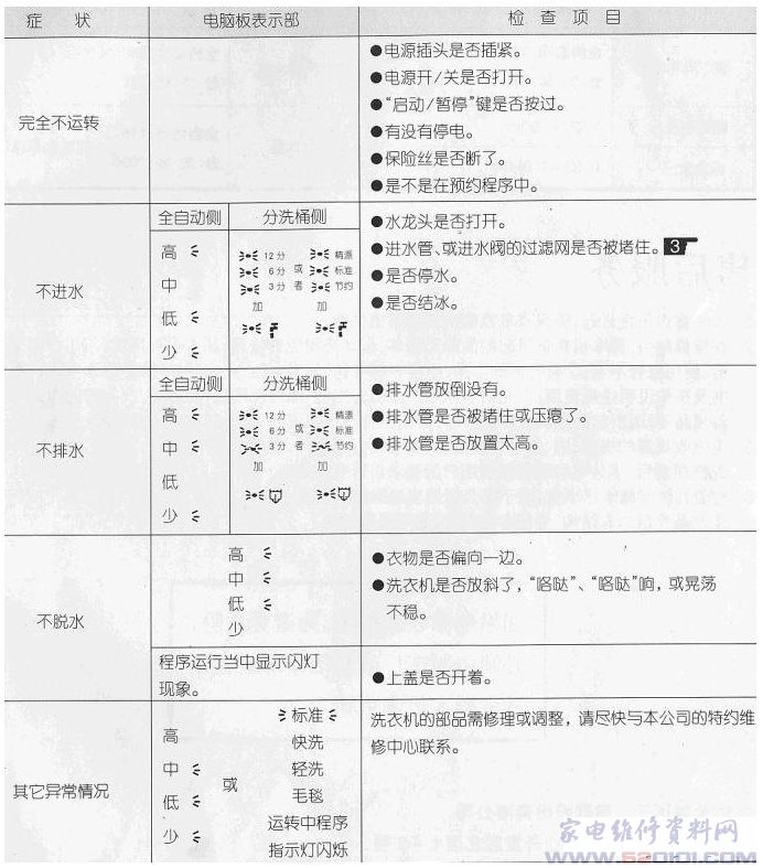 三洋全自动洗衣机故障代码(型号通用)