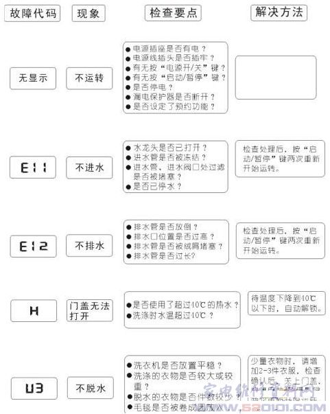 三洋洗衣机故障代码与故障排除方法