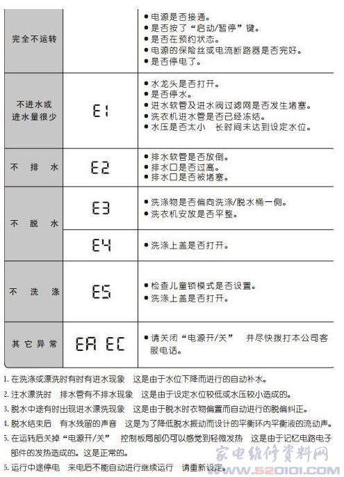 格兰仕滚筒洗衣机面板指示灯闪烁含义代码