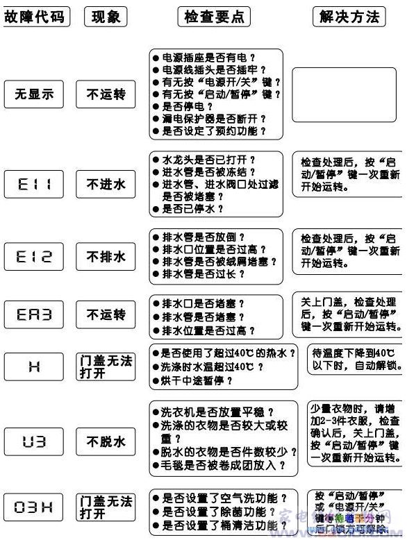 格兰仕滚筒洗衣机面板指示灯闪烁含义代码