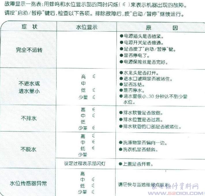 三洋全自动洗衣机故障代码(型号通用)