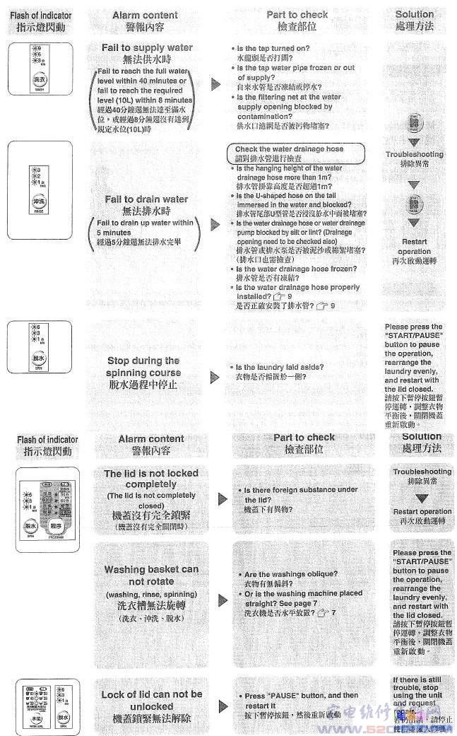 三洋全自动洗衣机故障代码(型号通用)