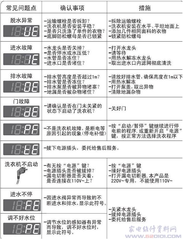 格兰仕滚筒洗衣机面板指示灯闪烁含义代码
