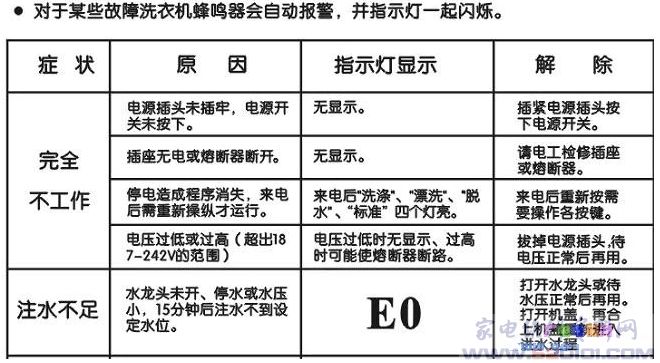 格兰仕滚筒洗衣机面板指示灯闪烁含义代码