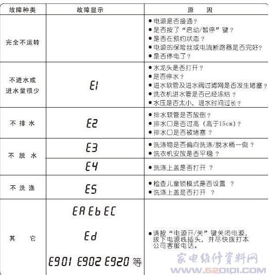 洗衣机故障代码