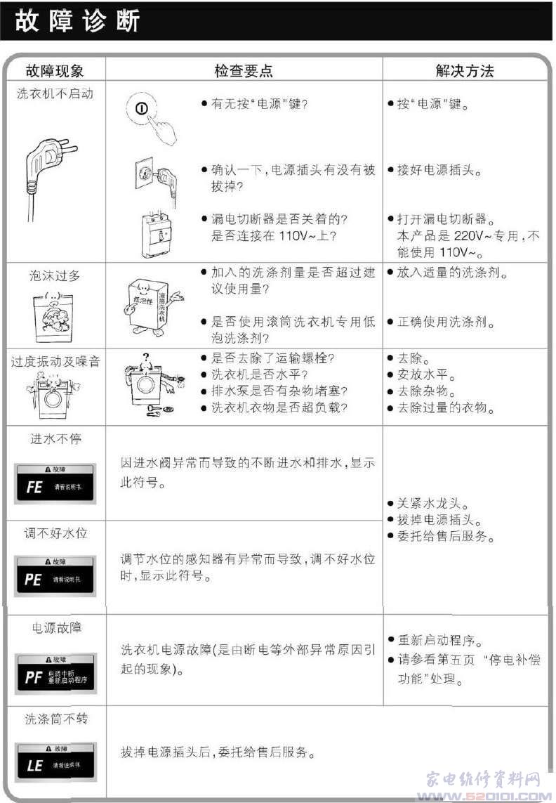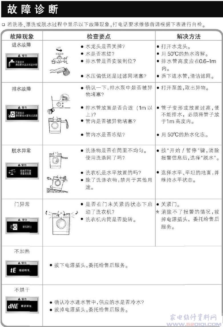 洗衣机故障代码