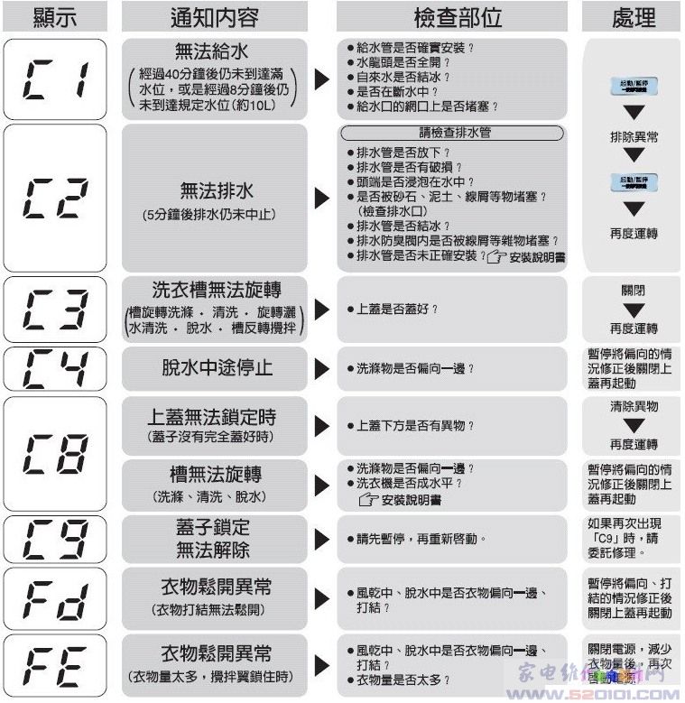 以上故障代码适合LG WF-T6011(~2)TD(E/F)洗衣机...