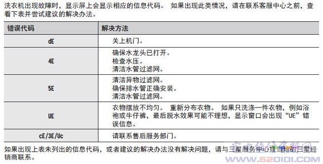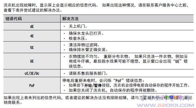 以上故障代码适合三星WF0804Y8E洗衣机...