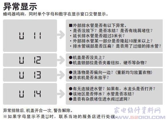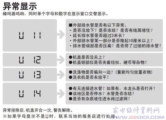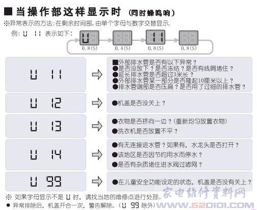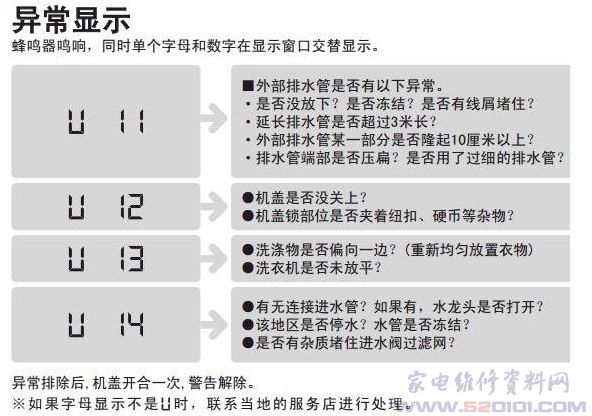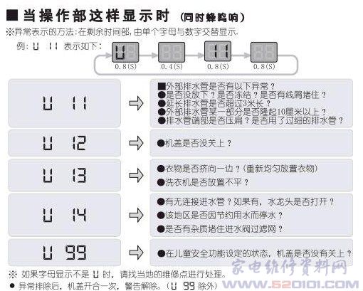 以上故障代码适合松下XQB75-Q750U洗衣机...