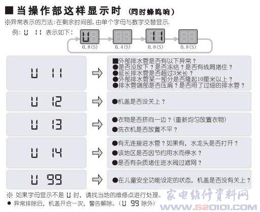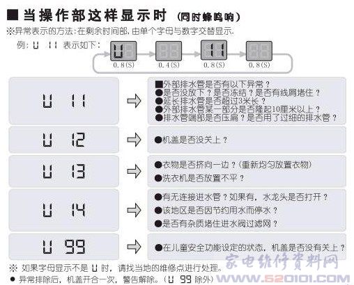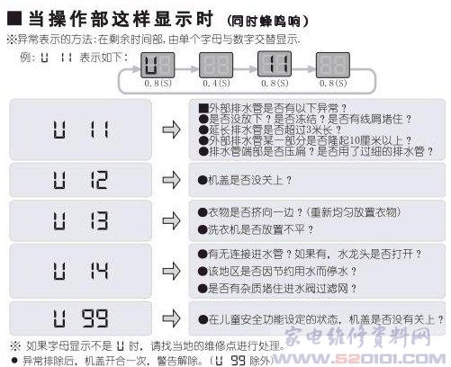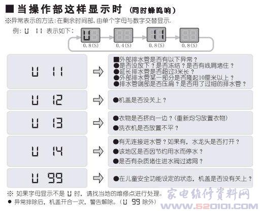 松下XQB80-QF8130洗衣机故障代码