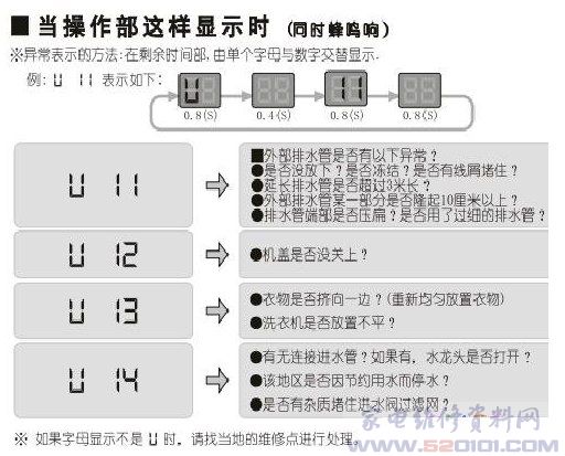 松下XQB72-Q7130洗衣机故障代码