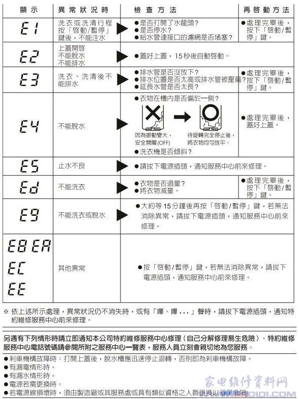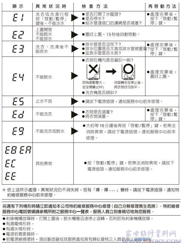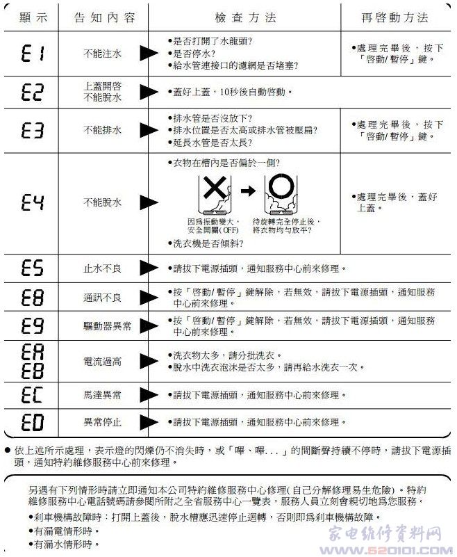 以上故障代码适合水仙XPB56-5721SD洗衣机...
