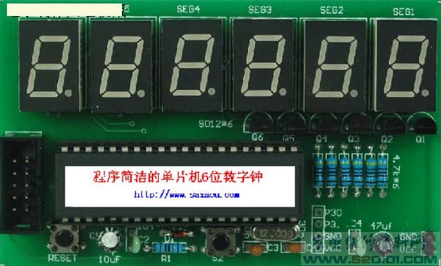 6个数码管分别显示时、分、秒,一个功能键,可以切换调整时分秒、增加数值、熄灭节电等功能全部集一键。