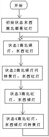 1.因为本实验是交通灯控制实验,所以要先了解实际交通灯的变化规律。假设一个十字路口为东西南北走向。初始状态0为东西红灯,南北红灯。然后转状态1南北绿灯通车,东西红灯。过一段时间转状态2,南北绿灯闪几次转亮黄灯,延时几秒,东西仍然红灯。再转状态3,东西绿灯通车,南北红灯。过一段时间转状态4,东西绿灯闪几次转亮黄灯,延时几秒,南北仍然红灯。最后循环至状态1。