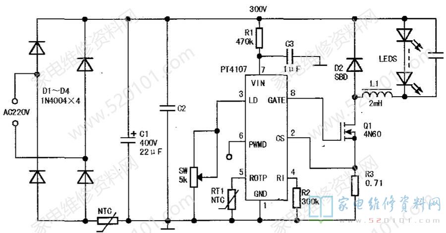 1、采用反激式绕组供电方式的7W/9W LED日光灯