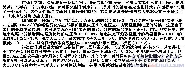 概述:这里介绍一个只用了一个元件(电源除外)的数显温度计。它虽然非常简单,单性能与一般的温度计相比却毫不逊色。