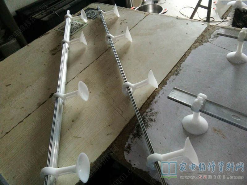 准备材料:32寸某牌子液晶电视,拆机背光灯条铝合金散热板六根,两根从中间截断,最后组成框体。液晶电视小号挂架,用手砂轮把挂钩切平,用做手柄。