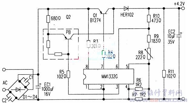 加大充电电流可减小检测电阻R6∥R7到0.3Ω,充电电流能达到300mA左右(充电时间=电池容量/充电电流)。另外,有MM1332G集成电路的改进型号LM3622,是National Semiconductor生产的,其性能比MM1332G优越,管脚分布稍有差别。具体使用可根据实际需要改装。笔者认为,一般情况下小电流充电为好。这样电池也不易发热,相应延长了其使用寿命,而且比较安全可靠。