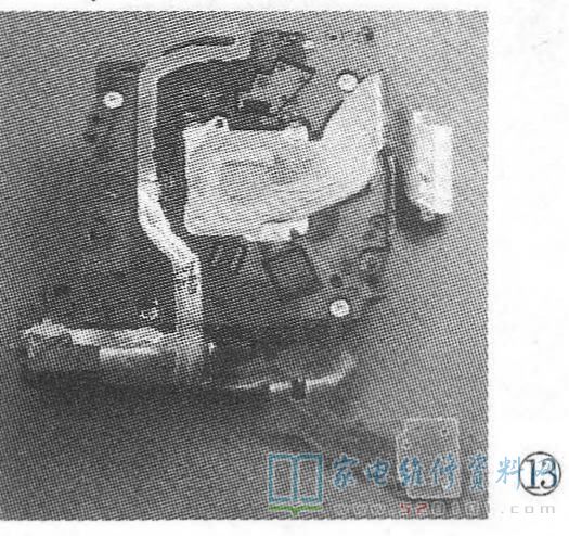 图13是该镜头的背面图。图中左下角顺贴在电机上面的后座排线弯折的地方,容易损断,造成故障,如图14所示。