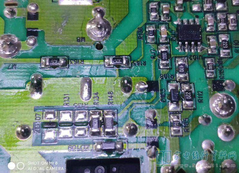 接修一台海尔U55H3收来的电视机,背光一组灯珠坏了,因为电视机有跟竖直细线,只能便宜处理卖,就不想换新的灯条,于是拆开观察,换掉了一些变色的灯珠,修复以后害怕使用不长久,于是决定技改电流,这个哈儿电视机一看背光板就觉得不好技改,测试电流350MA,后来对ADJ电路,芯片OB3334CP的1、2脚技改一点效果都没有,后来又技改驱动管子S集对地电阻技改,还是一点效果都没有。实在没有办法,后来把屏幕两组灯条并联使用,这时候每组电流180MA,后来调试电视机背光电流,感觉一点变化都没有,这种情况我就不知道是电视机本来背光电路有问题,还是我技改了电流的缘故,这种机型只好等下次遇到相同电视机再来研究了,反正一直觉得海尔电视机背光电路有些独特。
