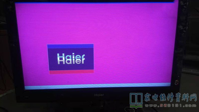 接修一台海尔32英寸液晶电视,故障表现为刚开始开机正常,十分钟以后就出现重影及红色,此机用的是三星屏,型号是LTA320AP05,检查进屏的排线只有一根,电路板上只显示 CKV1、CKVB1、CKV2、CKVB2,尝试CKVB2断开后,把靠近进屏的断点与CKV1相连,出现满屏横线图像变白,再尝试只是断开CKVB2(把0欧电阻去掉),图像不在重影变色,就是屏幕上有不规则竖条,远看图像没有影响。