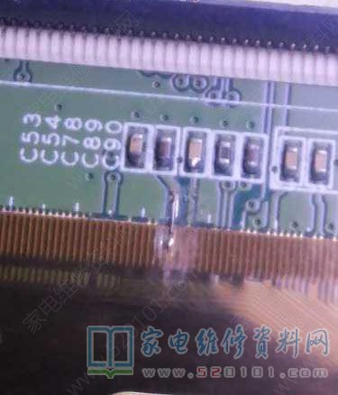 接修一台海尔55R3液晶电视,因为漏水导致灰屏,只能死马当活马医,屏边板的黄金软排线有几根线烧棚,手术刀和酒精伺候,平时都是用香蕉水和汽油,在屏上不敢用香蕉水和汽油,放大镜下,手术刀把烧糊的线割开或割断,酒精洗干净,两个边板之间直接用细漆包线连接,看了没问题,提心吊胆的上电开机,屏亮了,也有图像,发现左半边屏有一垂直竖带,10Cm宽左右,又仔细测两边板连续线,没问题,搞不定了,就这样交不了差,今天重新看边板,放大镜仔细看,边板和屏线有绿色铜锈,边刮边洗,发现有两根软排线腐蚀断了,换整个模块是没有办法了,看到高手能把边板焊好,我就不动那些好的,单独把软排线背面刮漆上锡,用细线把腐蚀点连接上,开机,正常的图像终于出来了。