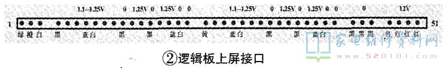 3.主板引起的花屏比较难查,将对比度调小图像能接近正常时,一般主板故障几率不大。大屏幕的上屏接口排线一般以双8线居多,其4对数据线加一对时钟线为一组,另一组组成相同(亦为双8线),引线总数为20根,但目前市场上常见大屏幕一般,上屏线有24根,海信TLM4236P即为24根上屏线,其中4根线无电压值,另20根引线电压从0.85V~1.5V之间不等。经验表明,只要这20根线上有电压存在,就有信号输入逻辑板。