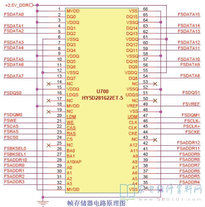 根据以上分析,首先检测缓存U700和U701,经查其供电及各脚对地阻值均正常,甚至对相关连接的电路过孔检查也未见异常,由此怀疑是其内部电路不良导致的运算出错,或是信号丢帧造成的该故障,至此,直接更换U700和U701后故障排除。