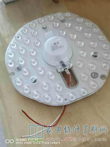 由此可以判断导致故障的原因大概率不是电源板,应该是其中一路供电负载出问题使电压升高触发保护机制动作而进入待机保护。第一个想到的就是灯条,手头上有没有替代灯条,所以找了一个47K欧的电阻作为假负载,上电测试依旧出于待机保护,但灯条输出电压最高将至140V。心想用电阻作为假负载欠妥,于是找了一个平常为同事维修过的磁吸式LED灯,通过测量灯盘上串联的LED灯珠两个开路,然后自己短路后数了下有42 The粒灯珠串联,做了个灯条假负载 (因没维修过海信液晶电视也不知道内部灯条具体LED灯珠串联几个,所以查了下资料是4条9灯,这个需要比对机壳编码),再次接入自制的“灯条假负载”开机 亮灯暗喜,不过三秒后还是进入待机保护状态。