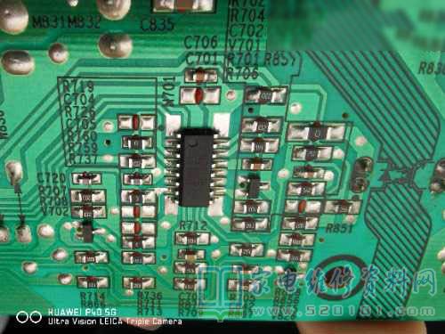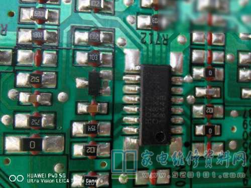 因为我不是专业的家维技术人员,没有专业的电源维修假负载工具和灯条检测仪,所以初步判断故障应该在电源板上。本着“先易后难”的维修原则,先在路测量了电源板V802 V805 V806 VD820以及背板后几个贴片元件都没问题,所以直接怀疑两个电源管理芯片:DP2303和HOZIGN,更换后故障依旧。
