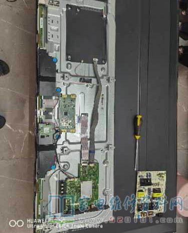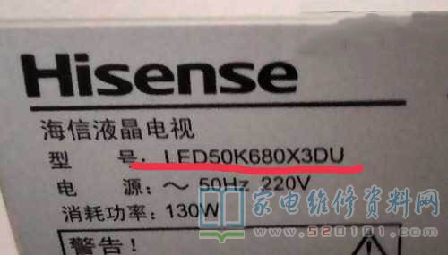接修一台海信LED50K680X3DU液晶电视,型号如图,故障现象是灰屏,耳朵贴近屏幕可听到轻微的短暂的滋滋声。拆机检查,直观电源板上一只电解电容(忘了记元件编号)已鼓包。看电路是+12v滤波电容中的一只。通电测+12v在9.6v—11...
