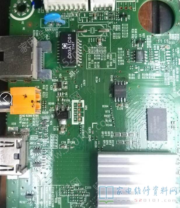 接修一台海信LED55XT770G3D液晶电视,故障现象是不定时自动关机。故障原因:该机采用RSAG7.820.4677主板,常见原因是C413漏电导致5V电压不稳定(偏低),将其去掉即可,如图1所示。 ...