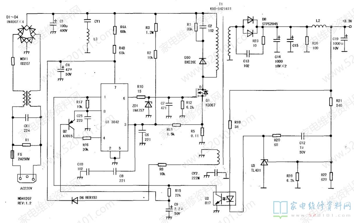 1、TENDA(腾达)THE-2400S电源板电路原理图