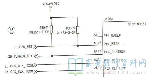 接修一台联想T530型笔记本电脑,开机后无显示。拆机取出主板(板号:11222-1),目测主板无进水和元件明显烧坏现象。检查显卡电路,测量VCCIR05VIDEO、VCC3VIDEO (3.3V 显卡锁相供电)、VCCGFXCORE D(显卡核心供电)、显卡前端总线供电、显卡27MHz时钟信号以及PCIE总线上GFX_ CLK_100M 1时钟信号均正常。