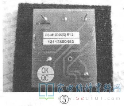 电话询问Fresenius维修工程师,MDC板报价17900元,觉价格太高,加之从故障现象判断问题应出在显示屏的背光灯驱动电路中,于是决定先自己维修。经过进一步检查,估计是MDC电路板上的高压逆变器有故障。该高压变压器的正、反面分别如图2、3所示,由于原装配件买不到,最后通过网上查找、电话联系,托朋友帮忙从北京寄来一只可替代的高压逆变器,其正、反面分别如图4、5所示,购买邮寄价格为1290元。稍作改造(背面引脚位置及长度)更换后试机,显示屏点亮,故障排除。