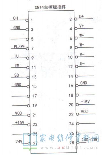 一台欧瑞E1000-0900T3 90kW变频器,空载运行时正常,带载运行时报“OC"故障码。首先测量电流传感器插件处的OUT端对地电压为0V,拔掉电流传感器插件后运行故障依旧。摘下驱动板,接.上维修电源,在插座的②脚对+15V处跨接...