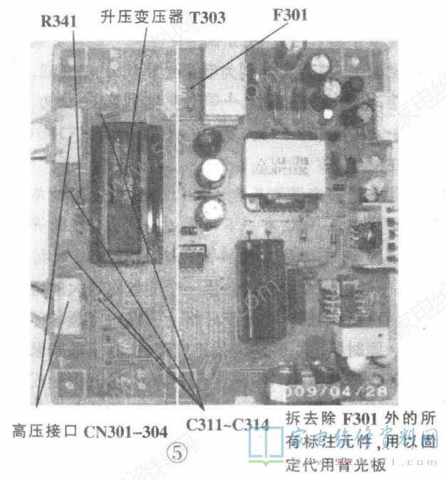 (3)高压板一般都配有1A以上保险丝,不要将其直接短路,以免高压部分故障连带损坏电源电路。