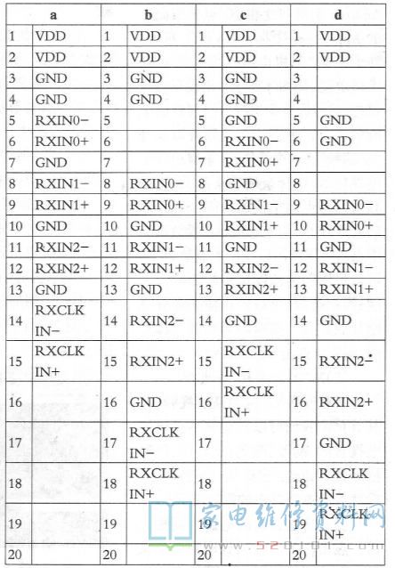问2:20PIN的LVDS接口是如何定义的,采用哪种屏线?答:20PIN常见定义如下: