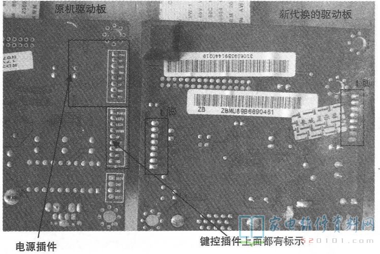 改装好后通电试机,显示正常,按键正常就说明成功。需要说明一点,新换的板子是外置12V供电,驱动板上已经把12V转换为5V了,可以使用12V给驱动板供电,但是考虑到12V负载过重问题,还是把原电源板上送给驱动板CN1插件上的①、②脚空置,把原电源板.上的5V接到新驱动板上的⑦、⑧脚上,见图1,这样仍使用电源板5V供电。
