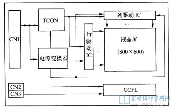LB121S1-A2液晶面板组件配置了三个输入插口CN1、CN2和CN3,CN1为41脚单路6bit TTL信号接口,CN2、CN3为CCFL背光灯插口。
