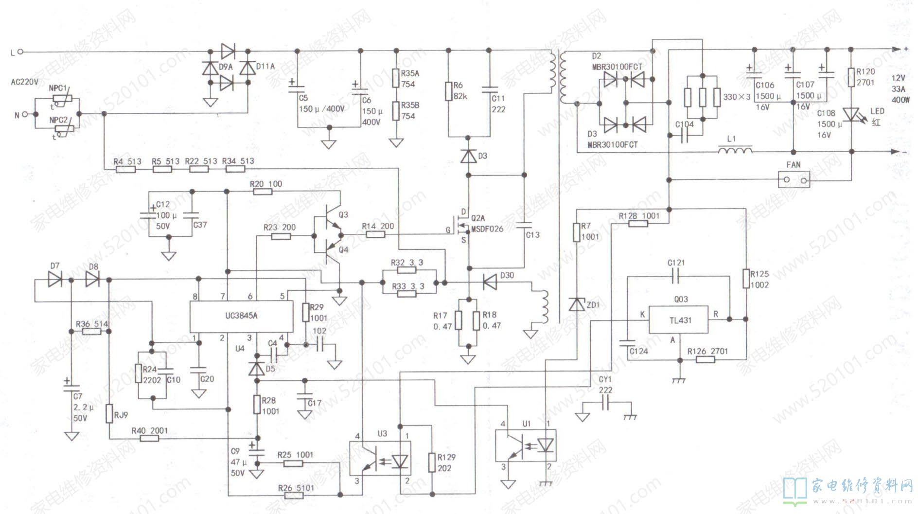 优达克斯GP-200MEAKCH400 ATX电源盒故障维修