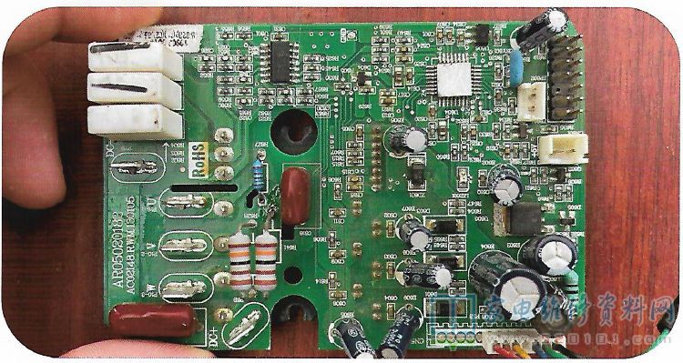 压缩机相电流检测只检测V W两相,通过采集R603、R604、10mΩ的水泥采样电阻上的电流信号,经误差放大电路放大以后送至CPU,CPU通过检测16 17脚电压波形间接就知道V W电流情况从而判断转子是否在合理范围内,以便CPU给合适的驱动时序。