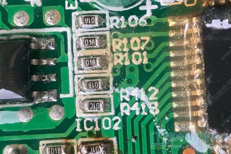 如下图所示,这100的电阻坏了报e5。311的 30 31 32脚外围找p4。