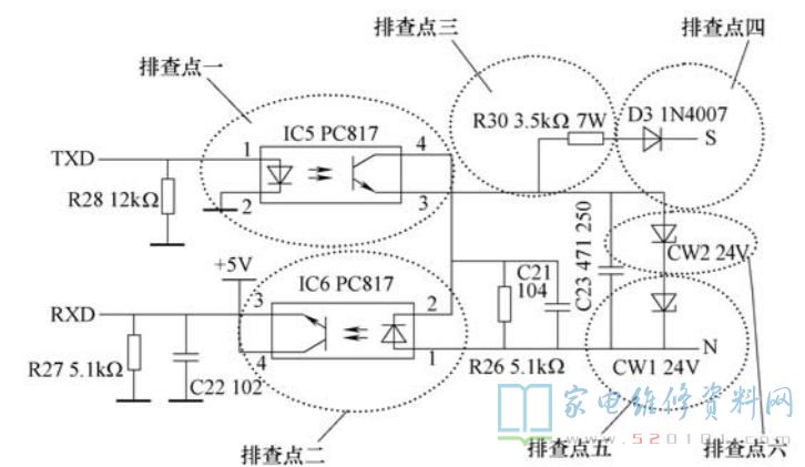 一台春兰KFR-50LW/d型柜式空调器接通电源,开机后出现“E1”保护代码,整机也不工作。经查“E1”的含义为空调器的室内机与室外机通信失效保护,需要拆板维修。 重点检查...