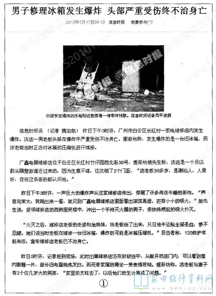 在夏季,冰箱、冰柜、空调的维修量较大,由于这类电器的维修需要一些专用的工具或设备,并要满足一定的维修环境,尤其是采用新型制冷剂的电器,若不按规范操作,极易出现安全事故。近年来,这类维修事故频见报端,如图1所示。 ...